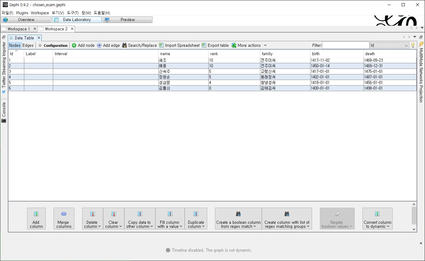 사용할 데이터는 사육신과 관련된 사람들 + 가상인물 1명의 네트워크다.